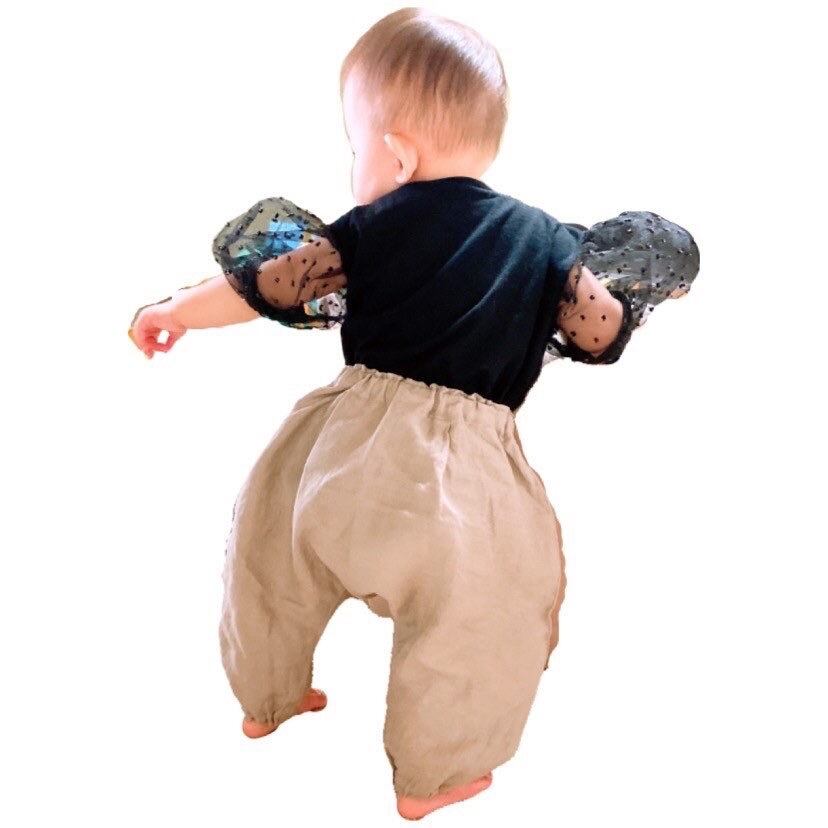 リネン素材のキッズサルエルパンツです。